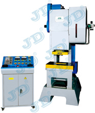 JH21-63以上電動調(diào)節(jié)裝模高度,滑塊裝設(shè)了上提式平衡缸,氣路采用安全雙聯(lián)閥控制,電氣采用PLC集中控制,安全性高,符合沖床安全標(biāo)準(zhǔn)。(可配置氣墊裝置,自動送料軸裝置,光電保護裝置,可搭配各種自動化設(shè)備)。J21G系列壓力機用于印刷、電子、電機制造等行業(yè),它是提高沖壓價精度,降低沖壓件成本,提高生產(chǎn)的理想工作母機。床身采用開式結(jié)構(gòu),剛性超負(fù)荷保險,干式組合摩擦合器與制動器,可配采用氣囊平衡缸。采用集中稀油強制潤滑系統(tǒng)、電器部分采用RVS系列全電腦工業(yè)控制系統(tǒng),或可選配電氣采用PLC控制。當(dāng)行程次數(shù)超過250次/分時,可選配電腦電子凸輪控制器,該控制器可實現(xiàn)自動停止死點功能。可裝配光電保護裝置,可搭配開卷、校平、自動送料裝置,實現(xiàn)壓力機自動化作業(yè)。